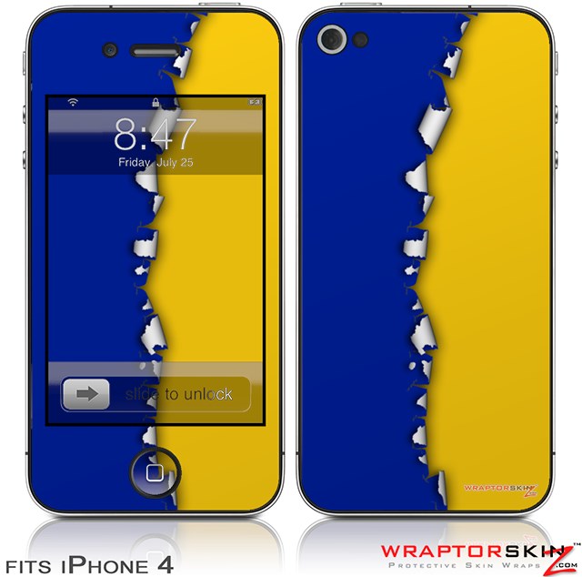 iPhone 4 Skin Ripped Colors Blue Yellow