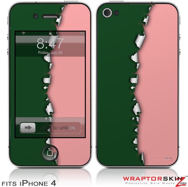 iPhone 4 Skin Ripped Colors Green Pink