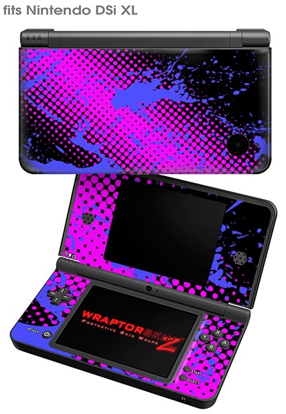 Nintendo DSi XL Skin Halftone Splatter Blue Hot Pink