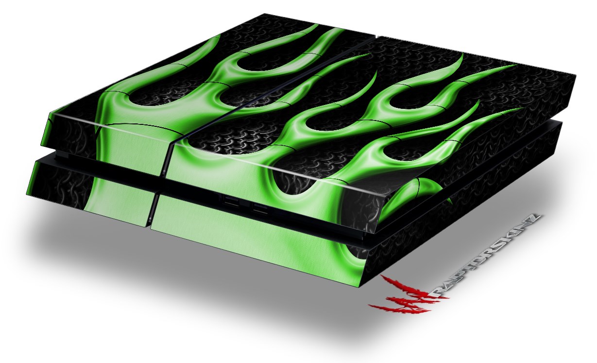 Vinyl Decal Skin Wrap compatible with Sony PlayStation 4 Original Console Metal Flames Green (PS4 NOT INCLUDED)