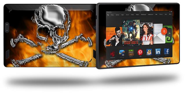 Chrome Skull on Fire - Decal Style Skin fits 2013 Amazon Kindle Fire HD 7 inch