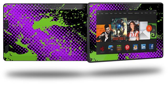 Halftone Splatter Green Purple - Decal Style Skin fits 2013 Amazon Kindle Fire HD 7 inch