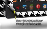 WraptorSkinz™ are self adhering vinyl skins that help prevent scratches and look great doing it. Unlike bulky silicon and plastic covers, WraptorSkinz are designed to be thin and very tough. WraptorSkinz are a composite of two layers of commercial grade materials. The bottom layer is a soft, flexible vinyl with a special removable adhesive that is easily positioned and applied without air bubbles. The bottom layer print with special UV protected, fade resistant inks that deliver superb photo quality designs in vibrant colors. Finally we bond a professional grade laminate over the entire skin adding a glossy protective finish.