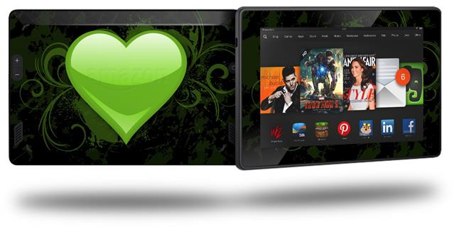 Glass Heart Grunge Green - Decal Style Skin fits 2013 Amazon Kindle Fire HD 7 inch