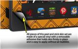 WraptorSkinz™ are self adhering vinyl skins that help prevent scratches and look great doing it. Unlike bulky silicon and plastic covers, WraptorSkinz are designed to be thin and very tough. WraptorSkinz are a composite of two layers of commercial grade materials. The bottom layer is a soft, flexible vinyl with a special removable adhesive that is easily positioned and applied without air bubbles. The bottom layer print with special UV protected, fade resistant inks that deliver superb photo quality designs in vibrant colors. Finally we bond a professional grade laminate over the entire skin adding a glossy protective finish.