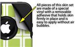 WraptorSkinz® are self adhering vinyl decal style skins and are a great way to add a new look to your protective case. WraptorSkinz® are a composite of two layers of commercial grade materials. The bottom layer is a soft, flexible vinyl with a special removable adhesive that is easily positioned, applied without air bubbles. Next we print the bottom layer with UV protected, fade resistant inks that deliver superb photo quality designs in vibrant colors. Finally we bond a professional grade laminate over the entire skin adding a glossy protective finish.