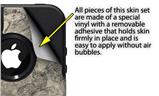 WraptorSkinz® are self adhering vinyl decal style skins and are a great way to add a new look to your protective case. WraptorSkinz® are a composite of two layers of commercial grade materials. The bottom layer is a soft, flexible vinyl with a special removable adhesive that is easily positioned, applied without air bubbles. Next we print the bottom layer with UV protected, fade resistant inks that deliver superb photo quality designs in vibrant colors. Finally we bond a professional grade laminate over the entire skin adding a glossy protective finish.