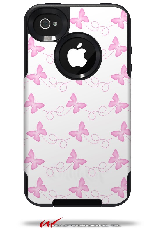 Pastel Butterflies Pink on White - Decal Style Vinyl Skin fits Otterbox Commuter iPhone4/4s Case (CASE SOLD SEPARATELY)