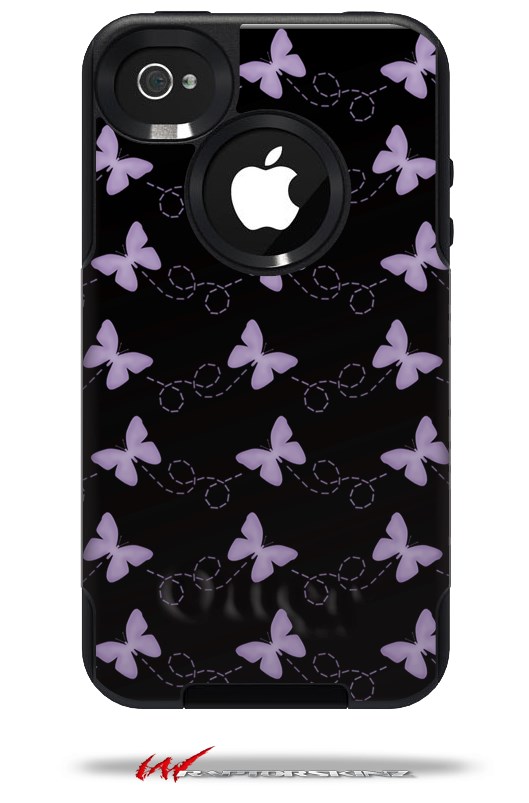 Pastel Butterflies Purple on Black - Decal Style Vinyl Skin fits Otterbox Commuter iPhone4/4s Case (CASE SOLD SEPARATELY)
