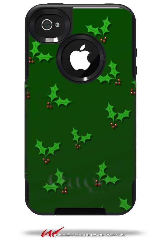 Christmas Holly Leaves on Green - Decal Style Vinyl Skin fits Otterbox Commuter iPhone4/4s Case (CASE SOLD SEPARATELY)