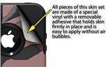 WraptorSkinz® are self adhering vinyl decal style skins and are a great way to add a new look to your protective case. WraptorSkinz® are a composite of two layers of commercial grade materials. The bottom layer is a soft, flexible vinyl with a special removable adhesive that is easily positioned, applied without air bubbles. Next we print the bottom layer with UV protected, fade resistant inks that deliver superb photo quality designs in vibrant colors. Finally we bond a professional grade laminate over the entire skin adding a glossy protective finish.