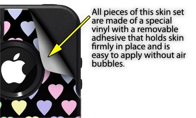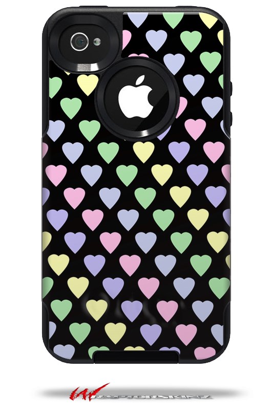 Pastel Hearts on Black - Decal Style Vinyl Skin fits Otterbox Commuter iPhone4/4s Case (CASE SOLD SEPARATELY)