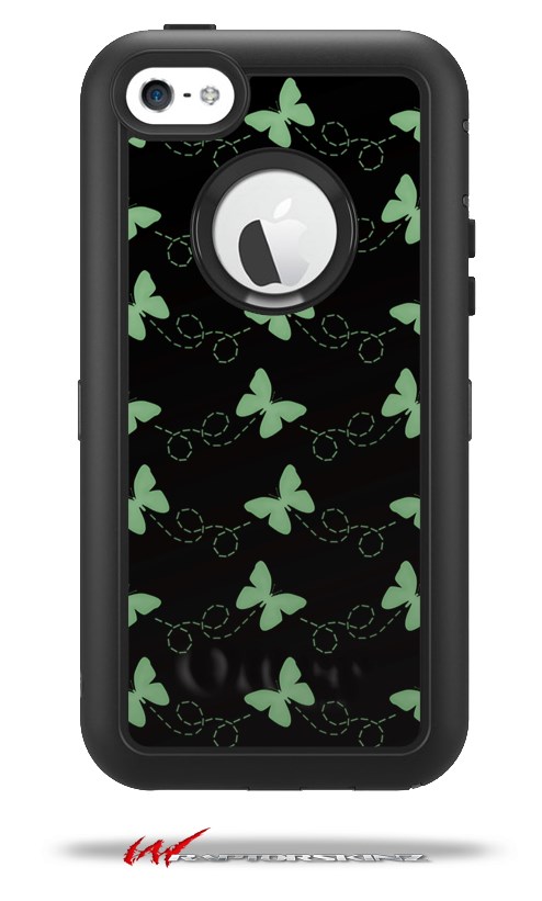Pastel Butterflies Green on Black - Decal Style Vinyl Skin fits Otterbox Defender iPhone 5C Case (CASE SOLD SEPARATELY)
