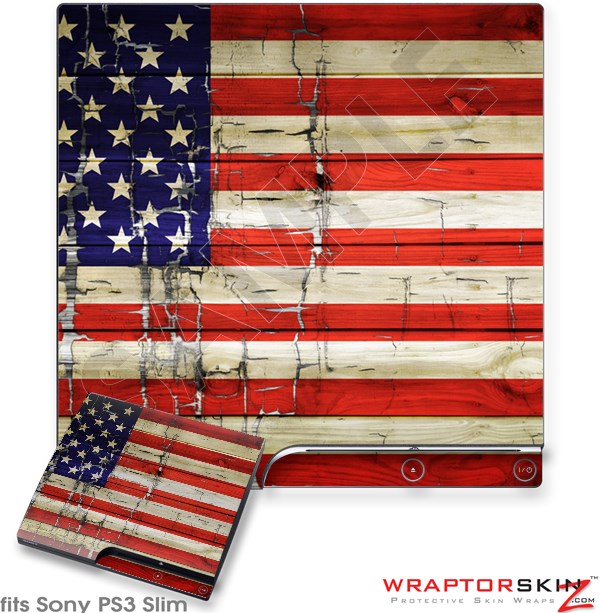 Sony PS3 Slim Skin Painted Faded and Cracked USA American Flag