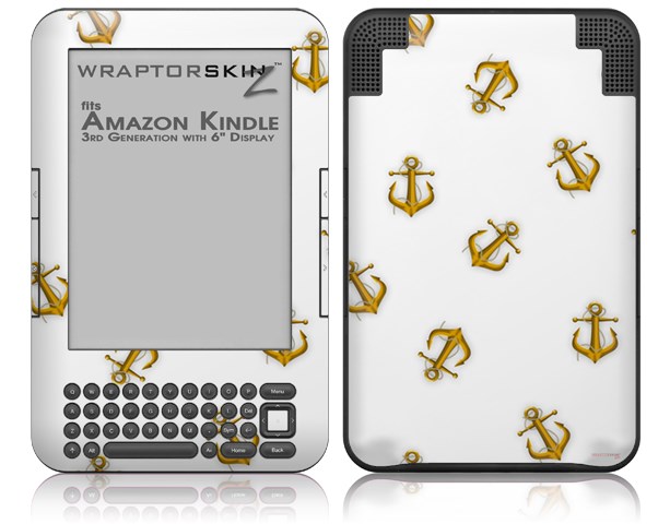 Anchors Away White - Decal Style Skin fits Amazon Kindle 3 Keyboard (with 6 inch display)