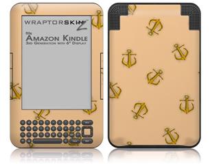 Anchors Away Peach - Decal Style Skin fits Amazon Kindle 3 Keyboard (with 6 inch display)