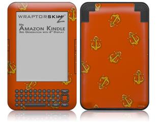 Anchors Away Burnt Orange - Decal Style Skin fits Amazon Kindle 3 Keyboard (with 6 inch display)