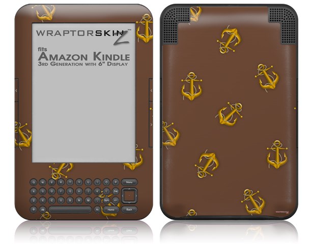 Anchors Away Chocolate Brown - Decal Style Skin fits Amazon Kindle 3 Keyboard (with 6 inch display)