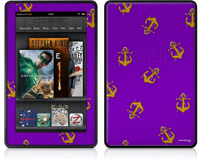 Amazon Kindle Fire (Original) Decal Style Skin - Anchors Away Purple