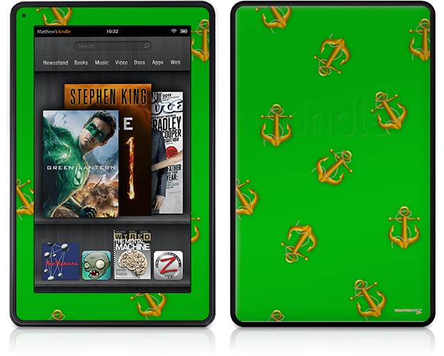 Amazon Kindle Fire (Original) Decal Style Skin - Anchors Away Green