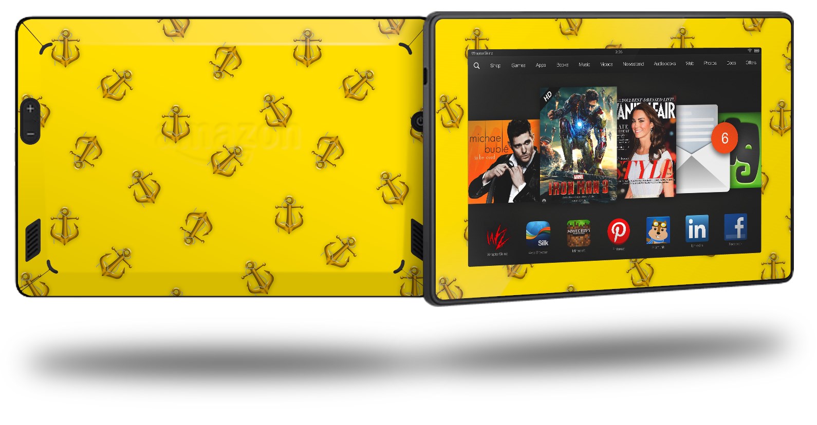Anchors Away Yellow - Decal Style Skin fits 2013 Amazon Kindle Fire HD 7 inch