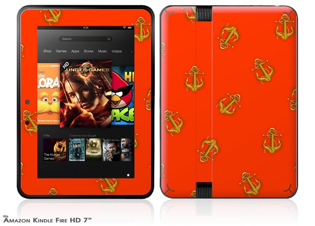 Anchors Away Red Decal Style Skin fits 2012 Amazon Kindle Fire HD 7 inch