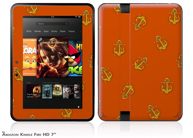 Anchors Away Burnt Orange Decal Style Skin fits 2012 Amazon Kindle Fire HD 7 inch