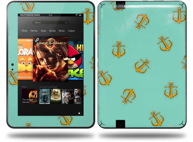 Anchors Away Seafoam Green Decal Style Skin fits Amazon Kindle Fire HD 8.9 inch
