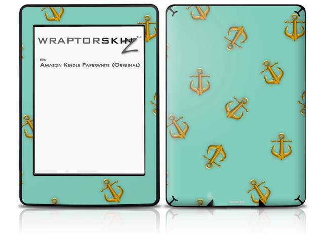 Anchors Away Seafoam Green - Decal Style Skin fits Amazon Kindle Paperwhite (Original)