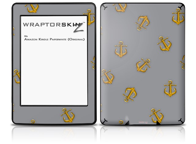 Anchors Away Gray - Decal Style Skin fits Amazon Kindle Paperwhite (Original)