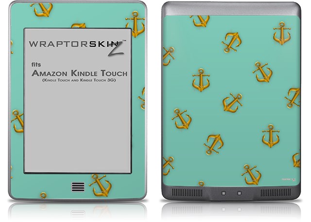 Anchors Away Seafoam Green - Decal Style Skin (fits Amazon Kindle Touch Skin)