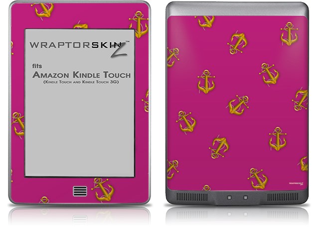 Anchors Away Fuschia Hot Pink - Decal Style Skin (fits Amazon Kindle Touch Skin)