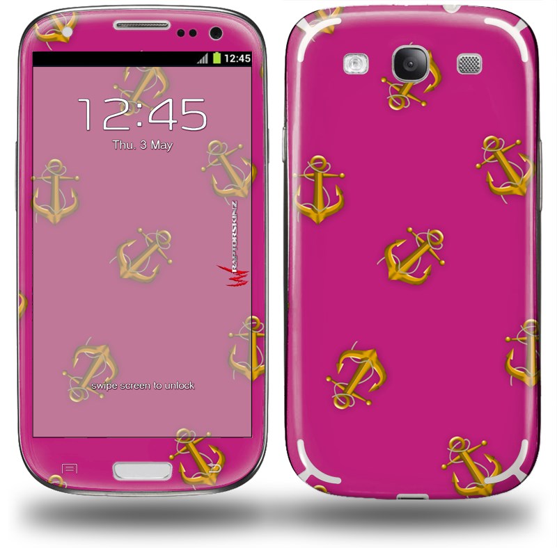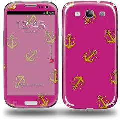 Anchors Away Fuschia Hot Pink - Decal Style Skin (fits Samsung Galaxy S III S3)