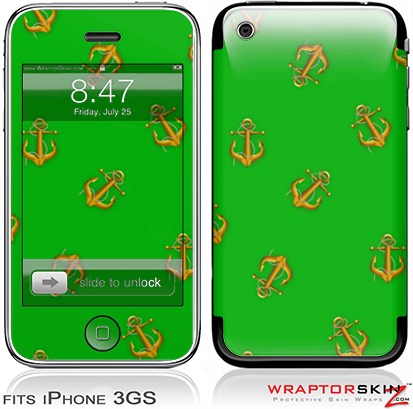 iPhone 3GS Decal Style Skin - Anchors Away Green