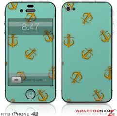 iPhone 4S Skin Anchors Away Seafoam Green