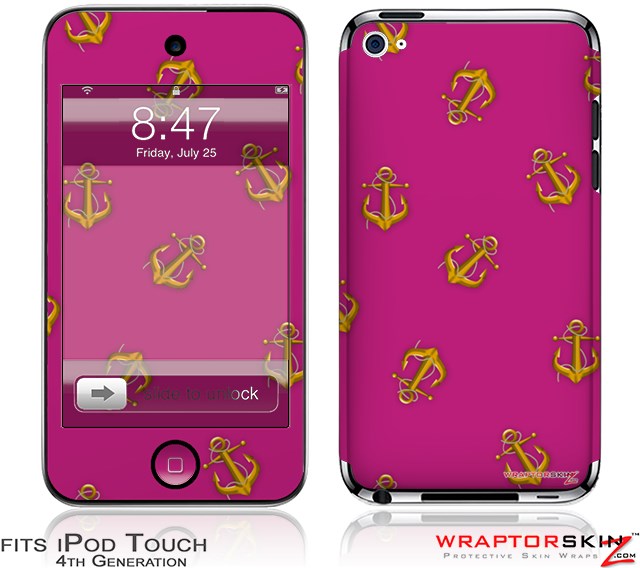 iPod Touch 4G Skin Anchors Away Fuschia Hot Pink