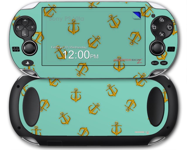Anchors Away Seafoam Green - Decal Style Skin fits Sony PS Vita