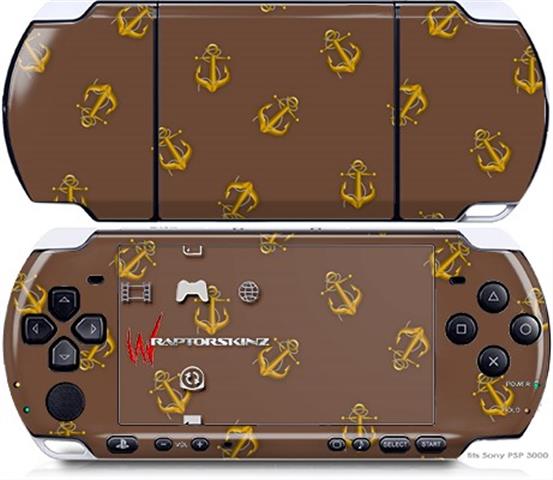 Sony PSP 3000 Decal Style Skin - Anchors Away Chocolate Brown
