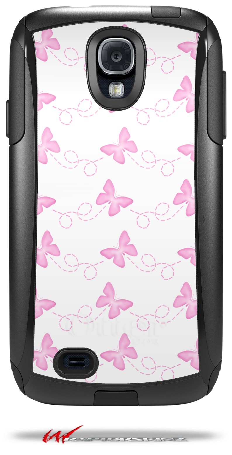 Pastel Butterflies Pink on White - Decal Style Vinyl Skin fits Otterbox Commuter Case for Samsung Galaxy S4 (CASE SOLD SEPARATELY)
