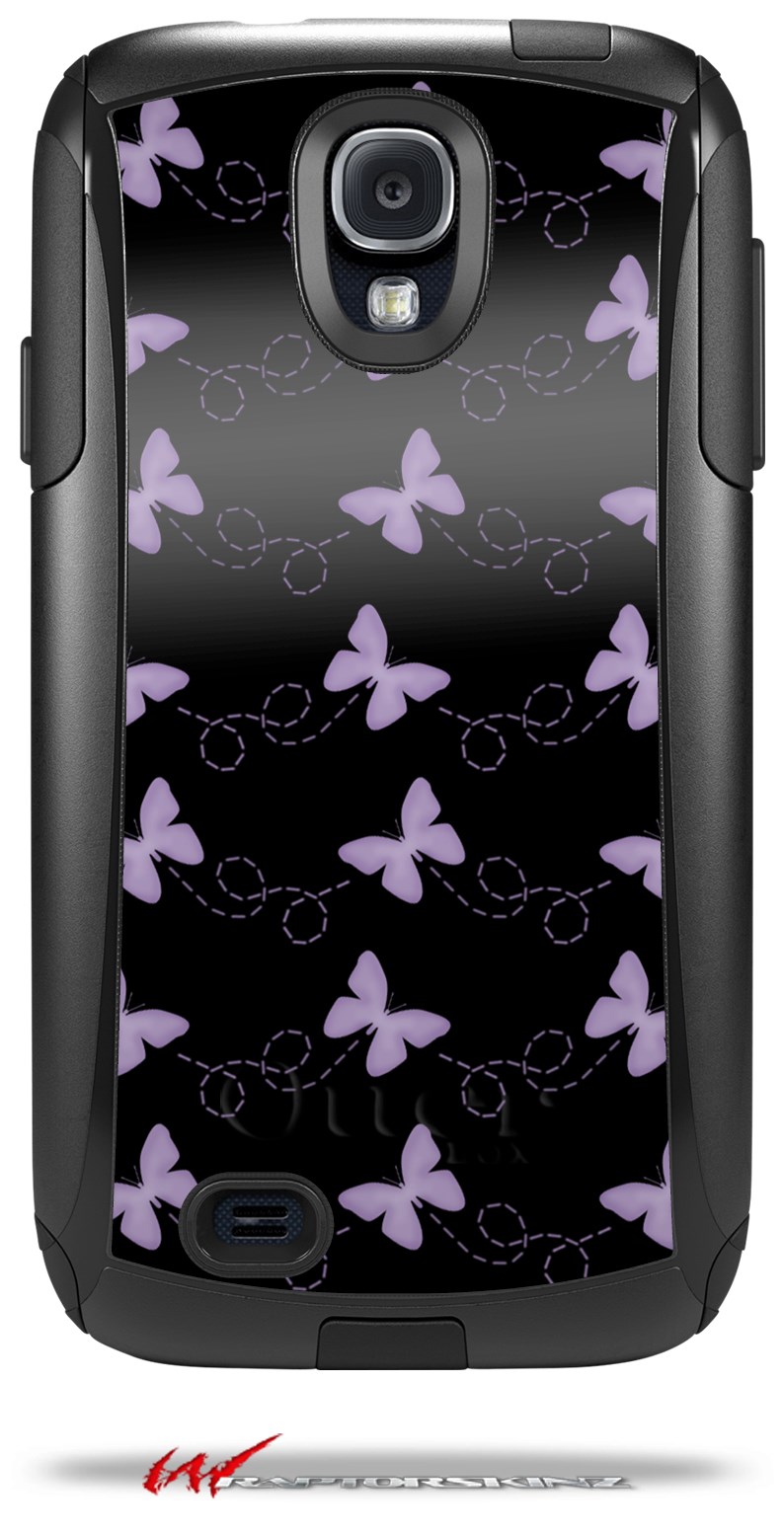 Pastel Butterflies Purple on Black - Decal Style Vinyl Skin fits Otterbox Commuter Case for Samsung Galaxy S4 (CASE SOLD SEPARATELY)