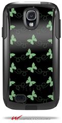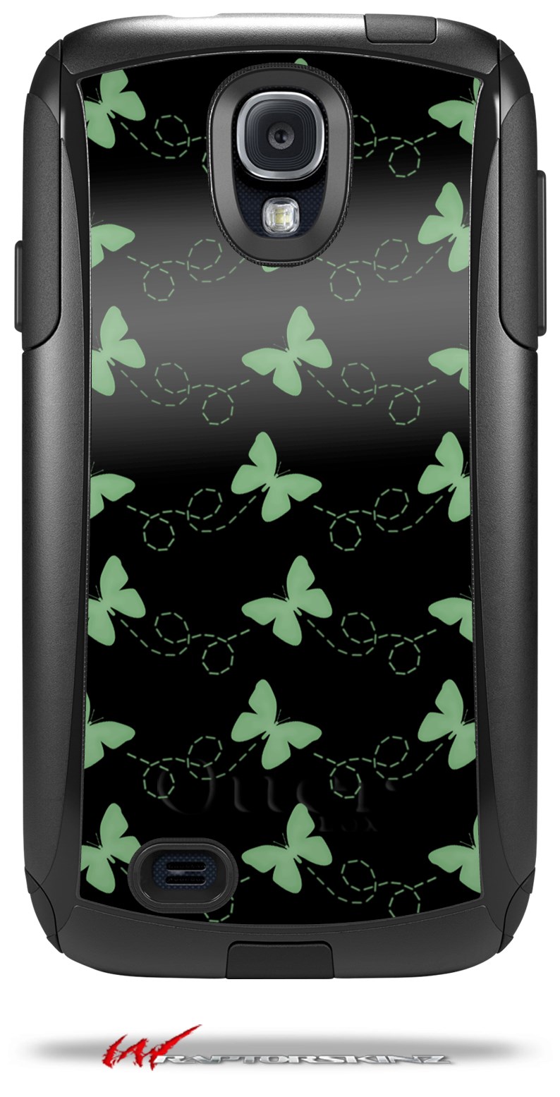 Pastel Butterflies Green on Black - Decal Style Vinyl Skin fits Otterbox Commuter Case for Samsung Galaxy S4 (CASE SOLD SEPARATELY)