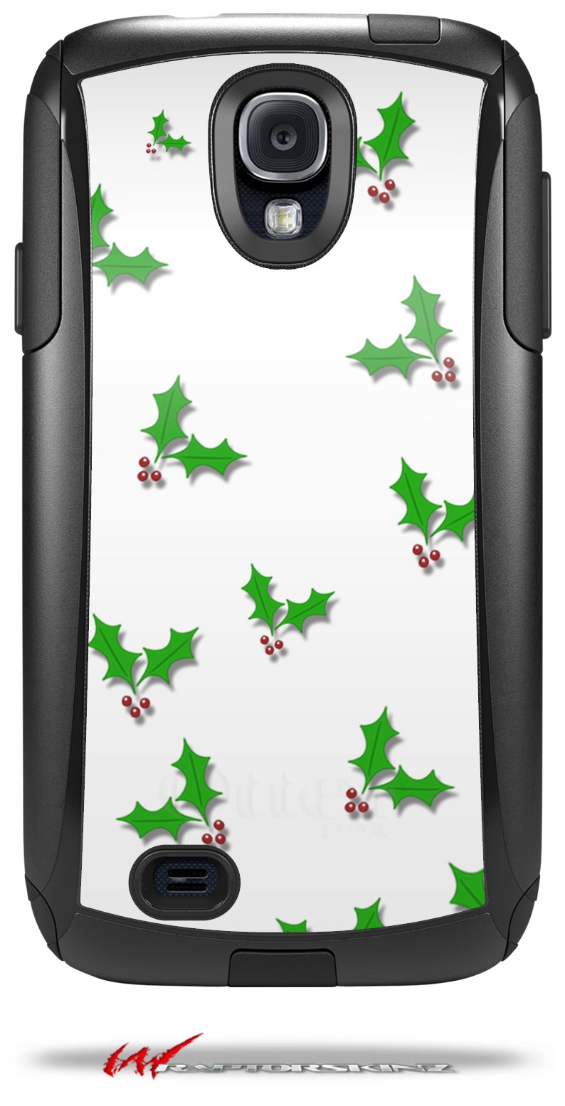 Christmas Holly Leaves on White - Decal Style Vinyl Skin fits Otterbox Commuter Case for Samsung Galaxy S4 (CASE SOLD SEPARATELY)