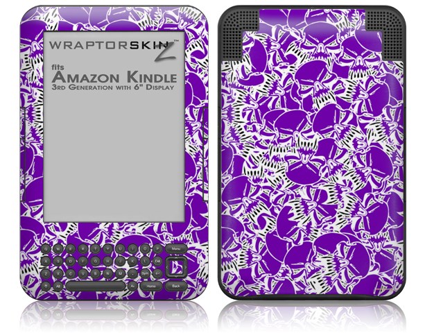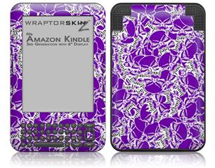 Scattered Skulls Purple - Decal Style Skin fits Amazon Kindle 3 Keyboard (with 6 inch display)