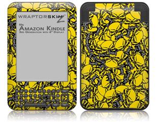 Scattered Skulls Yellow - Decal Style Skin fits Amazon Kindle 3 Keyboard (with 6 inch display)