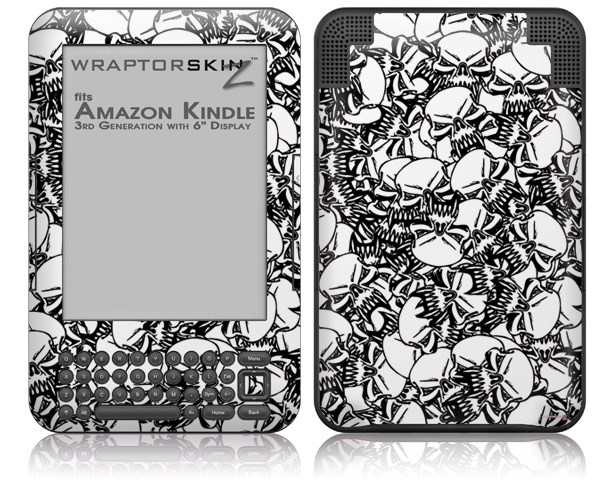Scattered Skulls White - Decal Style Skin fits Amazon Kindle 3 Keyboard (with 6 inch display)