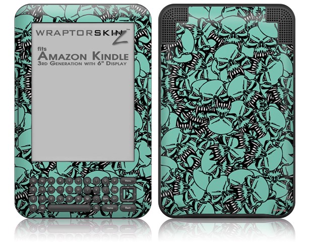 Scattered Skulls Seafoam Green - Decal Style Skin fits Amazon Kindle 3 Keyboard (with 6 inch display)
