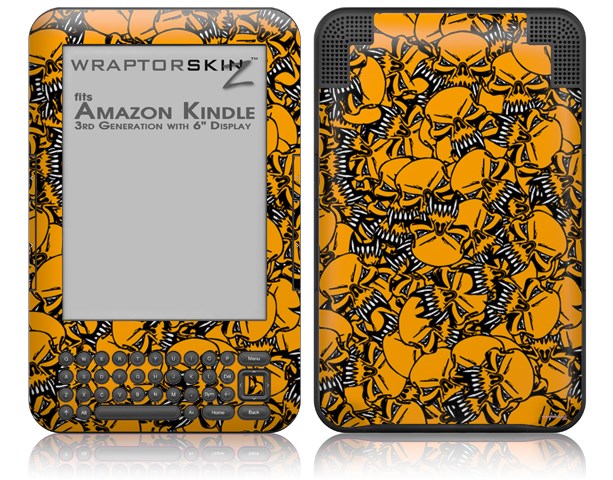 Scattered Skulls Orange - Decal Style Skin fits Amazon Kindle 3 Keyboard (with 6 inch display)