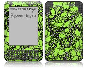 Scattered Skulls Neon Green - Decal Style Skin fits Amazon Kindle 3 Keyboard (with 6 inch display)