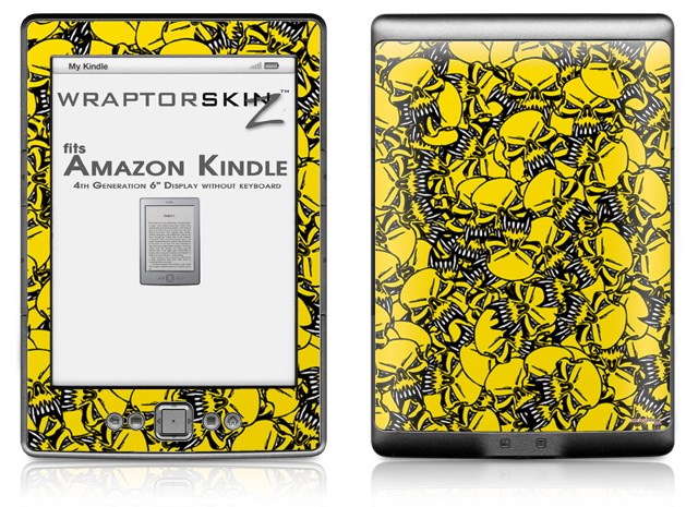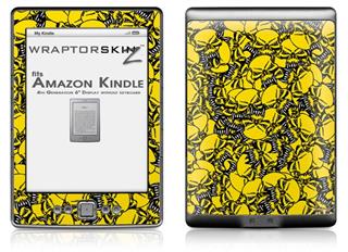 Scattered Skulls Yellow - Decal Style Skin (fits 4th Gen Kindle with 6inch display and no keyboard)
