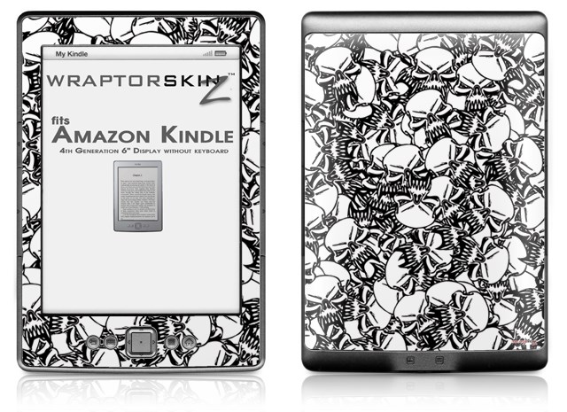 Scattered Skulls White - Decal Style Skin (fits 4th Gen Kindle with 6inch display and no keyboard)